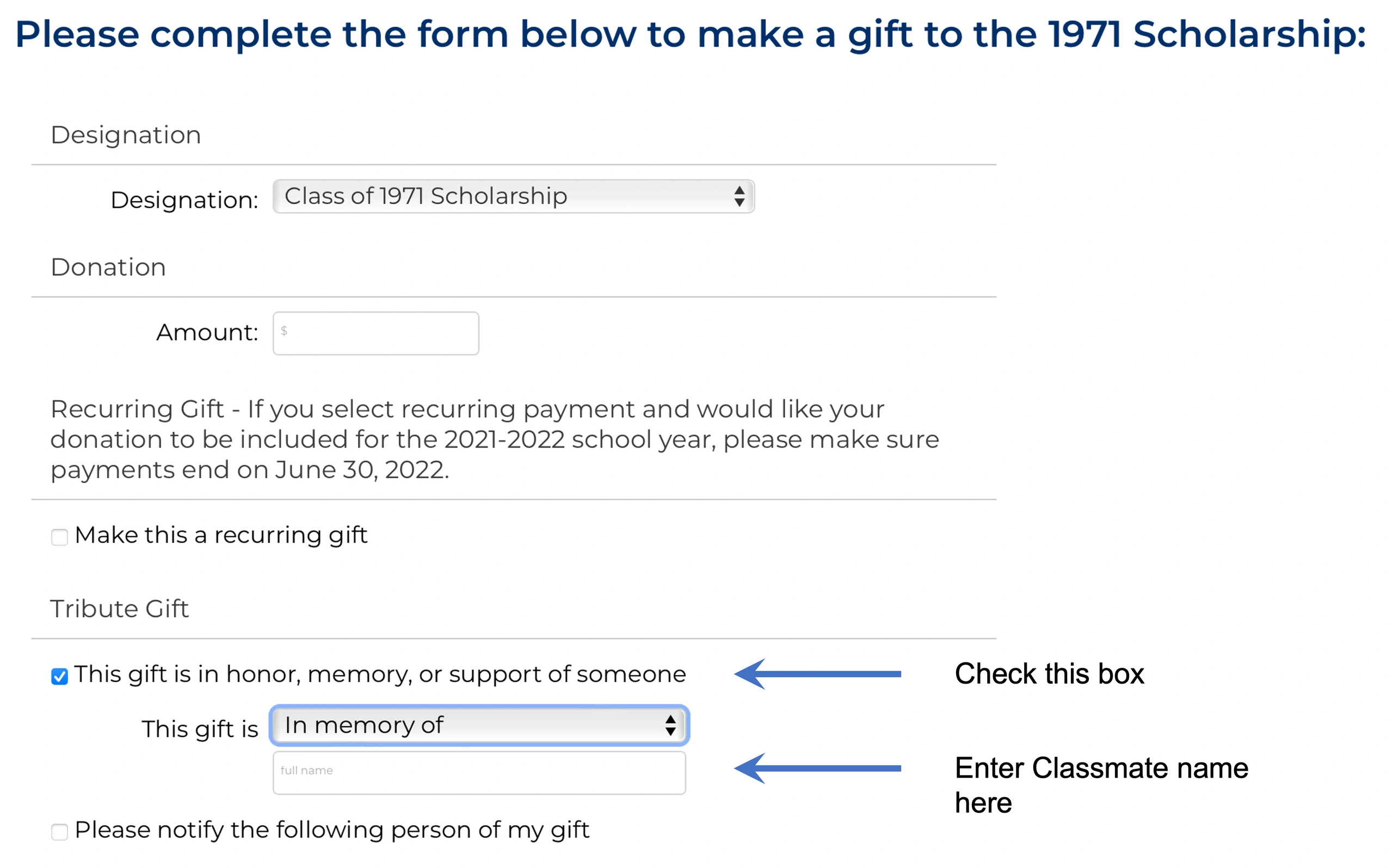 In addition to your gift to the Malvern Prep Class of 1971 Scholarship, including an In Memory Of gift, please check with your employer to see if they offer a Corporate Matching Gift Program, a type of philanthropy in which companies financially match donations that their employees make to nonprofit organizations.